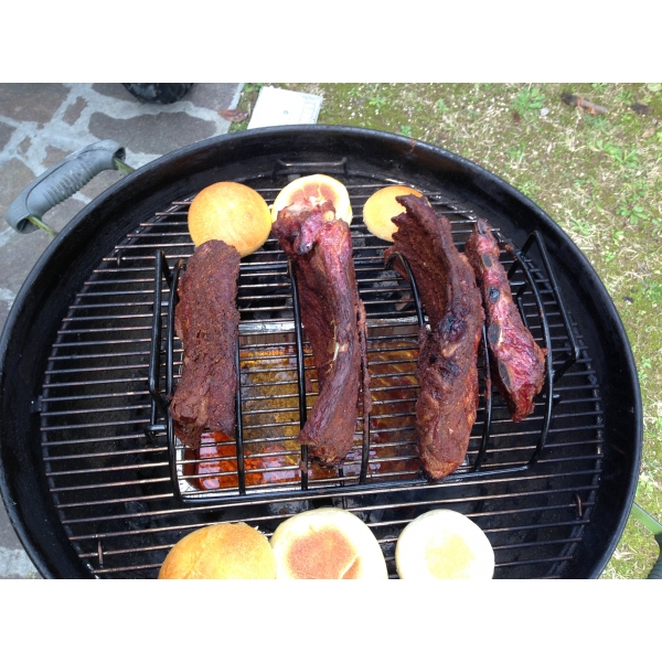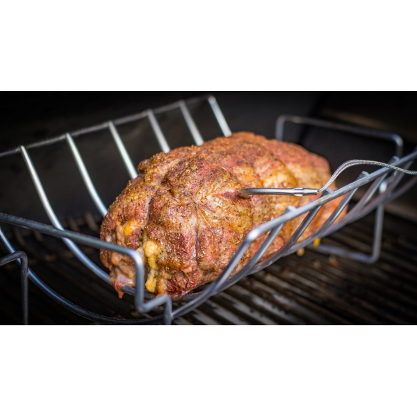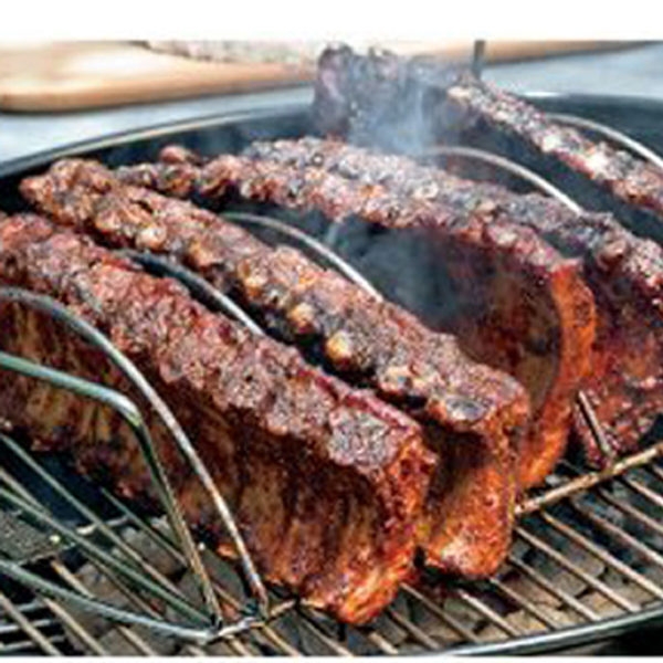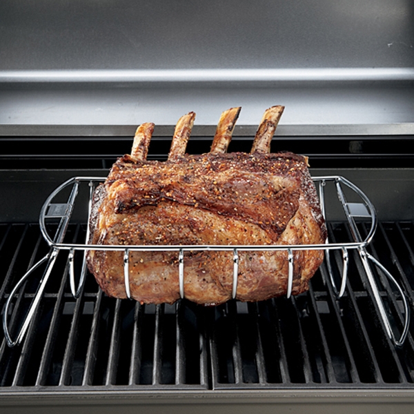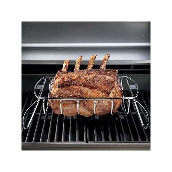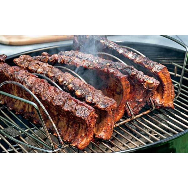 fantastico e versatile supporto di cottura per arrosti e costine ! utilizzalo per adagiare al suo interno il tuo arrosto per una cottura uniforme . giralo dall'altro lato per renderlo una rastrelliera in grado di accogliere e cuocere in contemporanea fino a 5 carrè di costine interi !