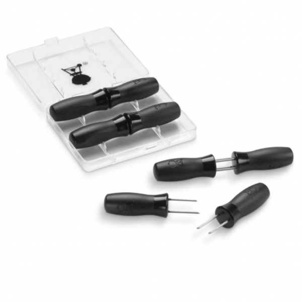 Una pannocchia alla griglia è l'ingrediente base per ogni grigliata tra amici. Il set per pannocchie include otto resistenti spiedini con impugnature in nylon per rendere facili da mordere le pannocchie imburrate.