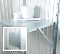 Accessorio zincato a caldo per garantire una lunga durata del prodotto Biohort. Il tavolo salvaspazio viene appeso con facilità su 2 montanti (2 montanti sono compresi nella dotazione di base della casetta ,oppure per altra posizione occorre ordinare i montanti separatamente): in un battibaleno si ha uno stabile piano di lavoro ripiegabile verso la perete quando non serve più - Carico massimo: 30 kg.