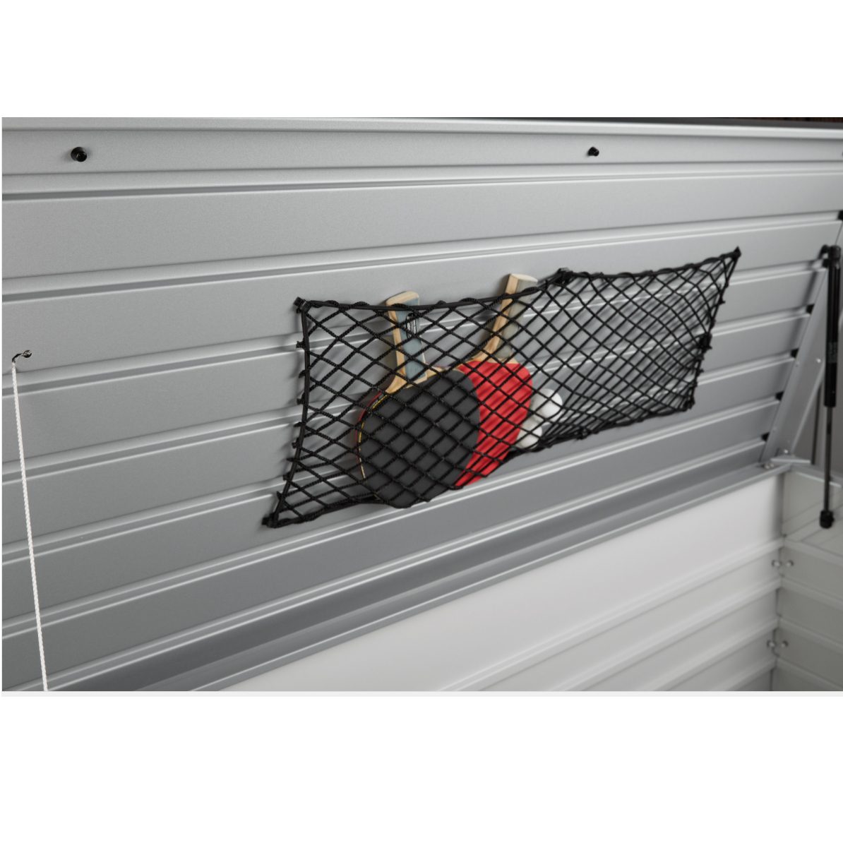 Per conservare oggetti di piccole dimensioni. Si può montare facilmente all'interno del coperchio del baule da esterno, dell’HighBoard, del LoungeBox. Retina in poliammide con elastico; incluso materiale di fissaggio.