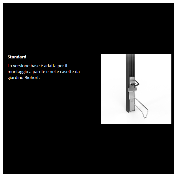 Standard - La versione base è adatta per il montaggio a parete e nelle casette da giardino Biohort.
