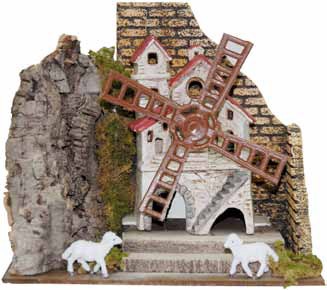 Mulino a vento della Euromarchi funzionante, adatto per decorare i presepi in modo suggestivo grazie alle figure in movimento che rende la scena più realistica con un effetto differente. E’ decorato con del muschio ed è un ottima figura per ricreare in modo originale le situazioni della vita reale che ci riportano alle azioni della vita quotidiana.