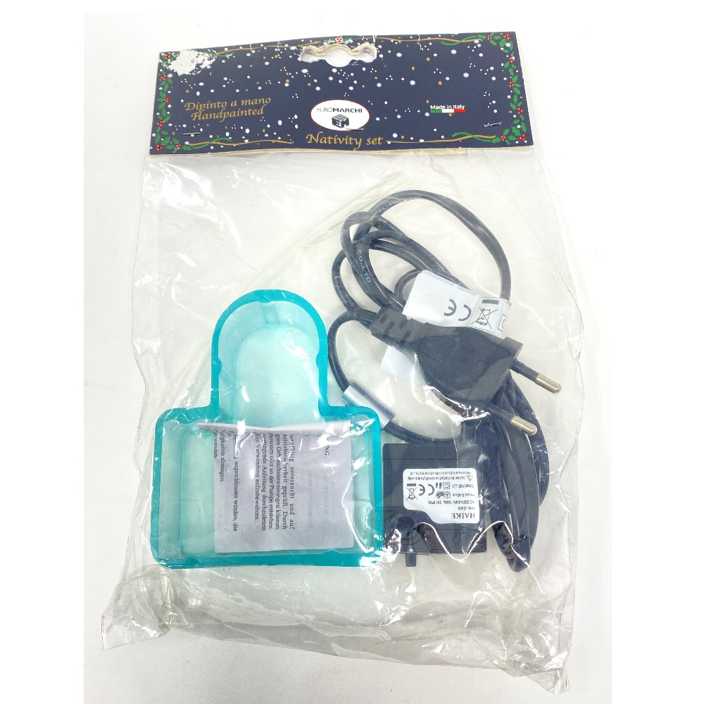Accessorio elettrico per fontana funzionante, ideale per allestire il presepe e creare una scena suggestiva, Euromarchi propone il meccanismo della fontana con pompa elettrica, tubo vitreo e vasca contenitore per l'acqua. Semplice da montare e da inserire in un presepe già esistente. Scopri gli altri accessori elettrici come i mulini ad acqua/vento.