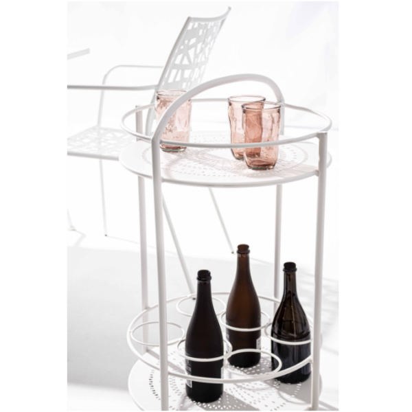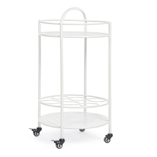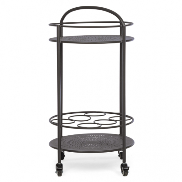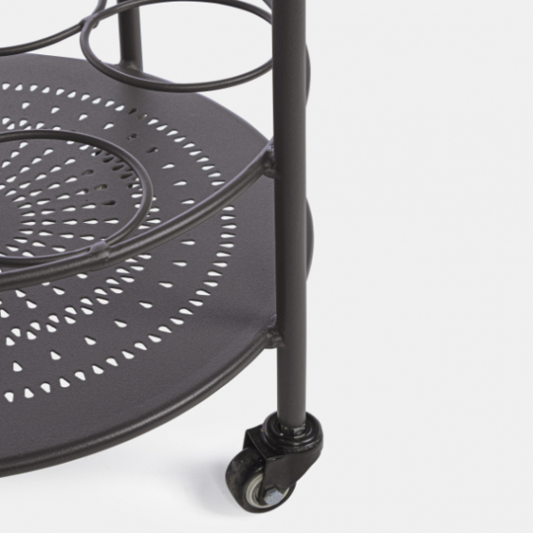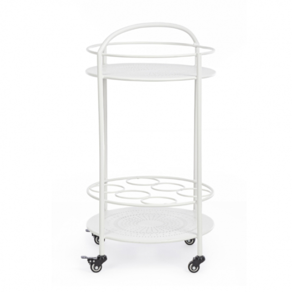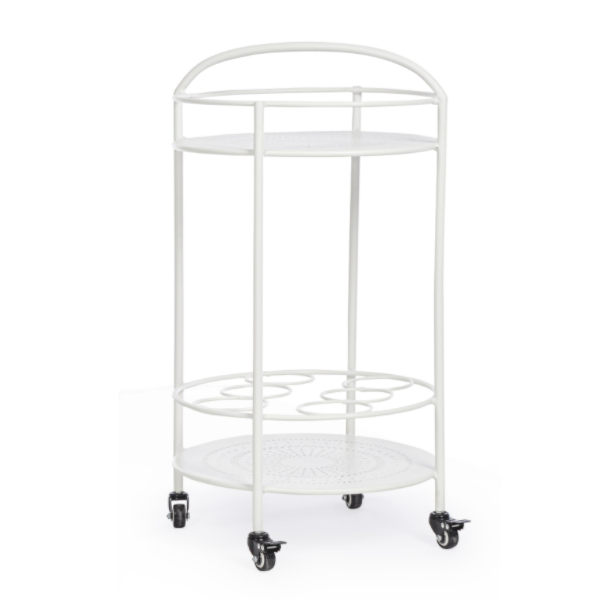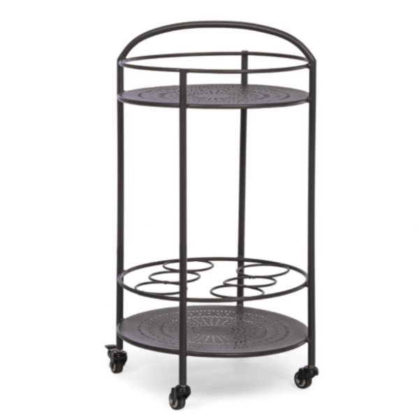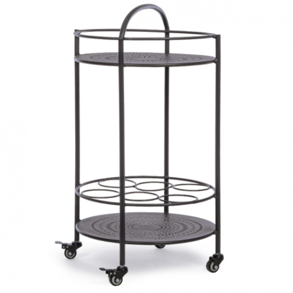 Carrello portabottiglie made by Bizzotto in acciaio trattato per esterno (e-coating), verniciato a polvere con finitura opaca. Splendido complemento da arredo esterno ideale per avere tutto a portata di mano all’occorrenza. Grazie alle ruote in plastica, riuscirai a portare le tue vivande ovunque tu abbia voglia.