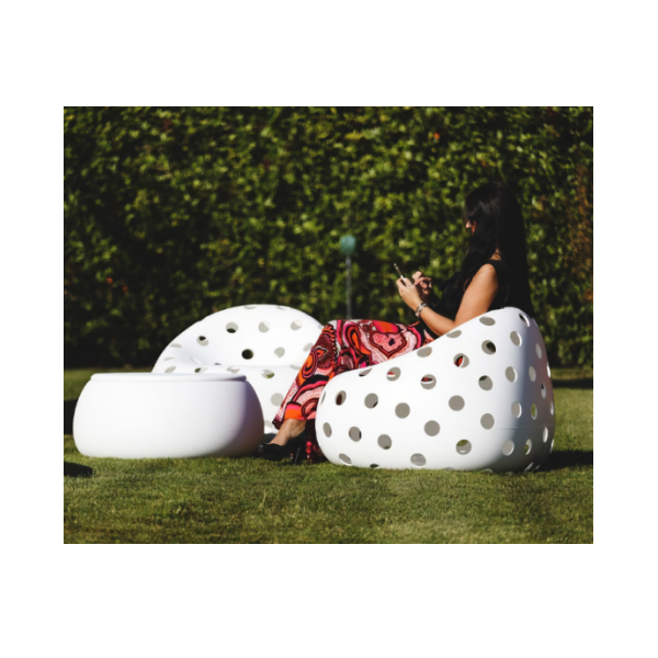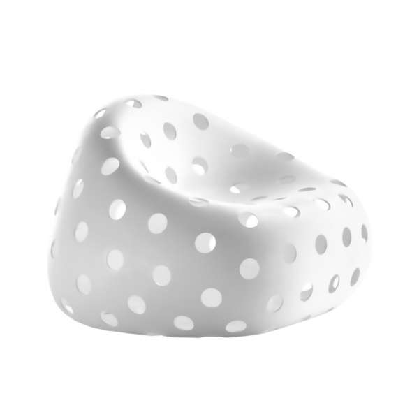Poltroncina derivata dalla famiglia “Gumball”, di grande impatto scenico e adatta ad ambienti in cui necessitano soluzioni di forte personalità. La superficie forata “svuota” gli oggetti e conferisce una leggerezza inedita per questa tipologia di arredi.
