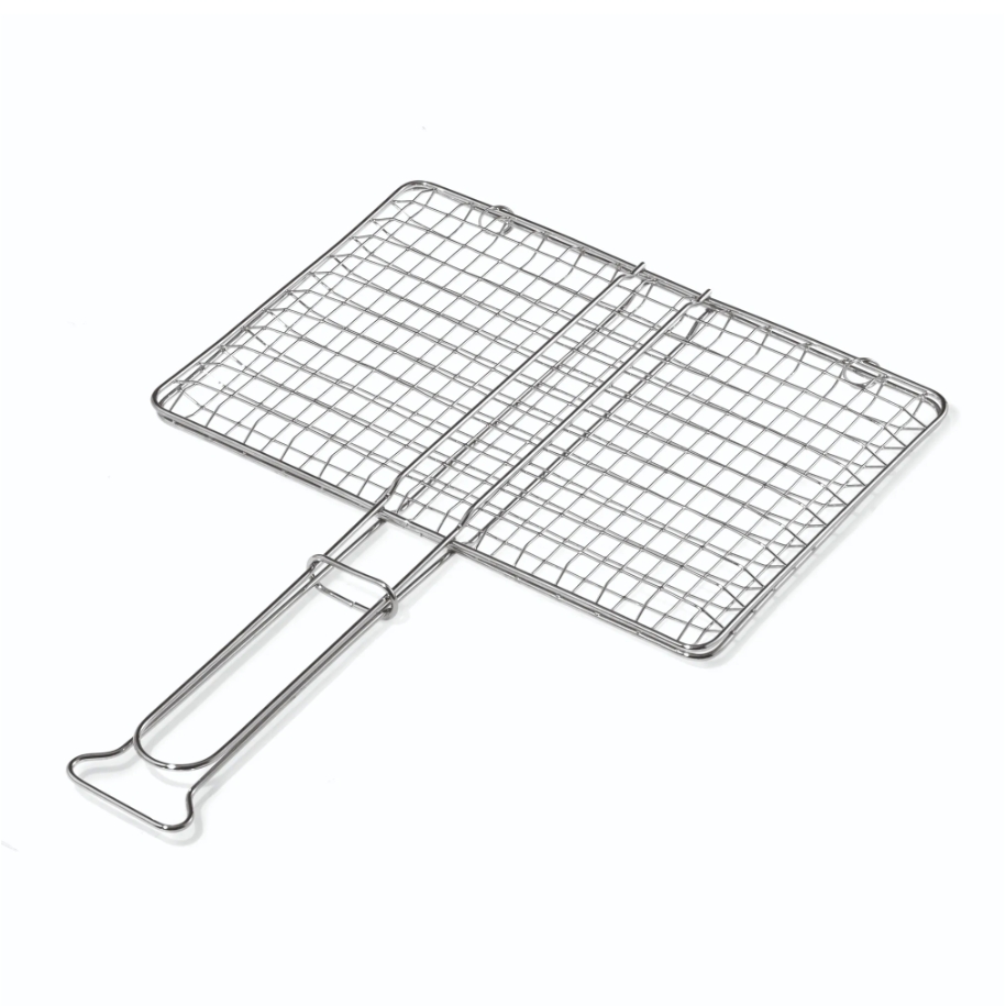 Graticola a rete senza piedi: indispensabile per la cottura delle pietanze alla brace garantendo una cottura sana ed igienicamente sicura. Dotata di comoda e pratica maniglia per una presa sicura, rappresenta un fantastico articolo di produzione Italiana pensato per i tuoi momenti col barbecue