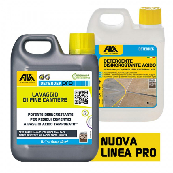 Detergente acido concentrato per rimuovere le incrostazioni del dopo posa e lo sporco da cantiere, elimina le efflorescenze saline dal cotto ed il calcare da pavimenti, rivestimenti (docce), sanitari.