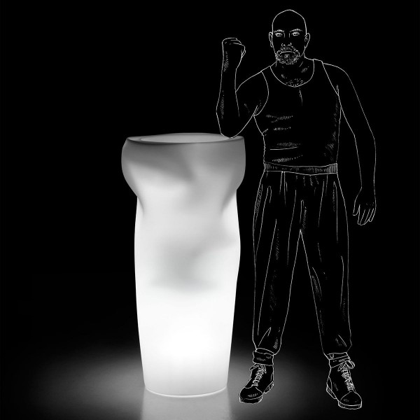 Vaso luminoso dalle forme fluide ricavate dalla compressione dell’oggetto appena estratto dallo stampo, quando il materiale è ancora flessibile. La fluidità delle forme impreviste che ne risultano, contribuiscono a diffondere una luce d’atmosfera morbida e sempre diversa per ciascuna lampada, unica ma seriale. DESIGN JOEVELLUTO (JVLT)