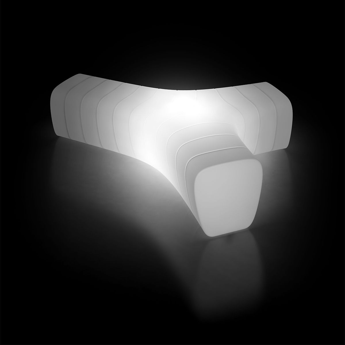 Panca modulare componibile illuminabile grazie a kit luce bianco. “Jetlag” è un sistema ideale per grandi superfici: i vari elementi accoppiati creano infinite combinazioni lineari o organiche, per adattarsi a tutti i tipi di spazio arredandoli con affascinanti sculture luminose. Disponibile su richiesta il sistema di fissaggio a terra. DESIGN CÉDRIC RAGOT