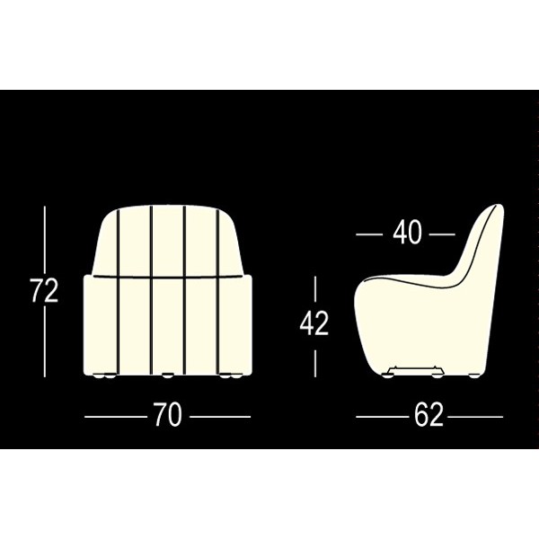 Dimensioni: cm 70 x 62 x 42/72 h K