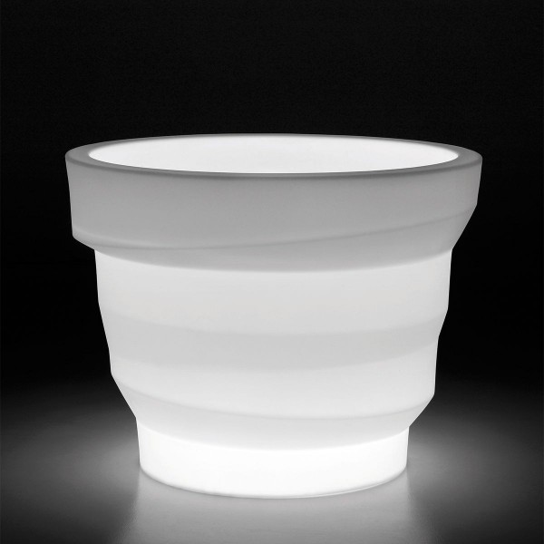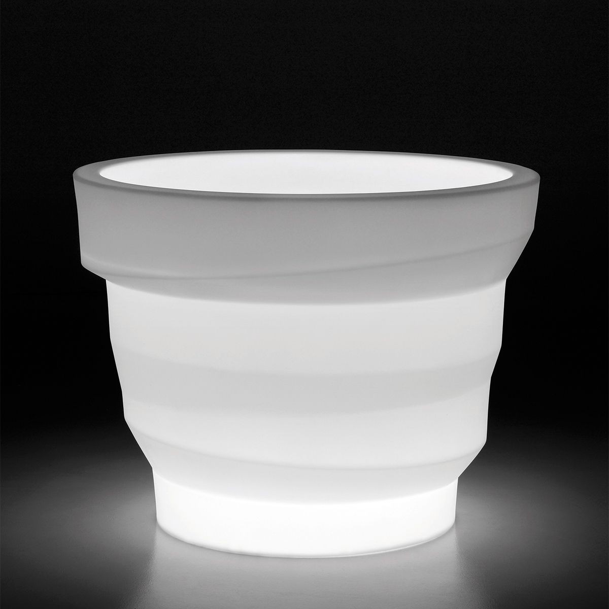 Vaso luminoso di grandi dimensioni adatto ad allestimenti d’effetto o in giardino. I piani spezzati contribuiscono a creare dei forti contrasti di luce ed ombra per una luce d’atmosfera dinamica e coinvolgente. DESIGN MATTEO RAGNI