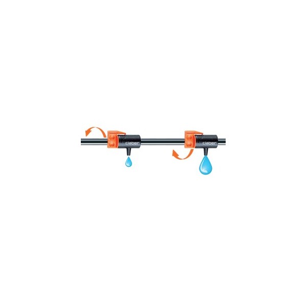 Gocciolatore regolabile da 0 a 6 litri/ora per un'irrigazione calibrata in funzione delle diverse necessità delle piante e della natura del terreno.
