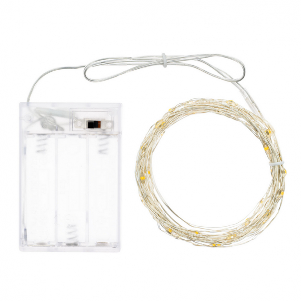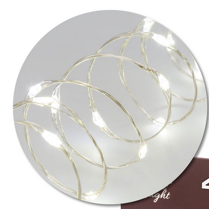 Catena Lineare composta da 40 MicroLed dal diametro di 1,5mm a luce fissa, possiede un fantastico cavo in metallo nel colore argento ideale per le composizioni nei vasi o nelle lanterne. Grazie all innovativa tecnologia metal silver, che impiega cavi in metallo flessibile, la catena può essere plasmata in ogni forma e consente di decorare qualsiasi cosa.