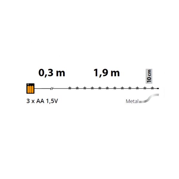 Catena Lineare composta da 20 MicroLed con stelle a luce fissa o flash, possiede un fantastico cavo in metallo nel colore argento modellabile. Catena ideale per le composizioni nei vasi o nelle lanterne. Grazie all'innovativa tecnologia metal silver, che impiega cavi in metallo flessibile, la catena può essere plasmata in ogni forma e consente di decorare qualsiasi cosa.