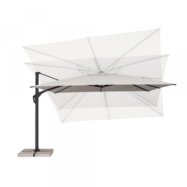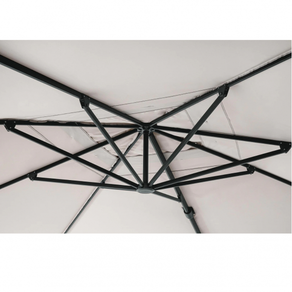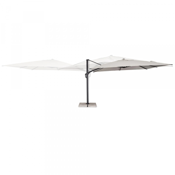 Splendido Ombrellone a braccio laterale Aries mt 3x4 made by Andrea Bizzotto. Ombrellone di una certa estetica, pratico e funzionale. L'ombrellone Aries è in grado di ruotare su se stesso di 360 gradi permettendo di posizionare l'ombra ovunque si desidera. Possiede diverse posizioni di inclinazione verticale per un migliore riparo dal sole, grazie ad una maniglia dalla facile impugnatura ed un'inclinazione destra-sinistra perfetta per le ore in cui tramonta il sole.