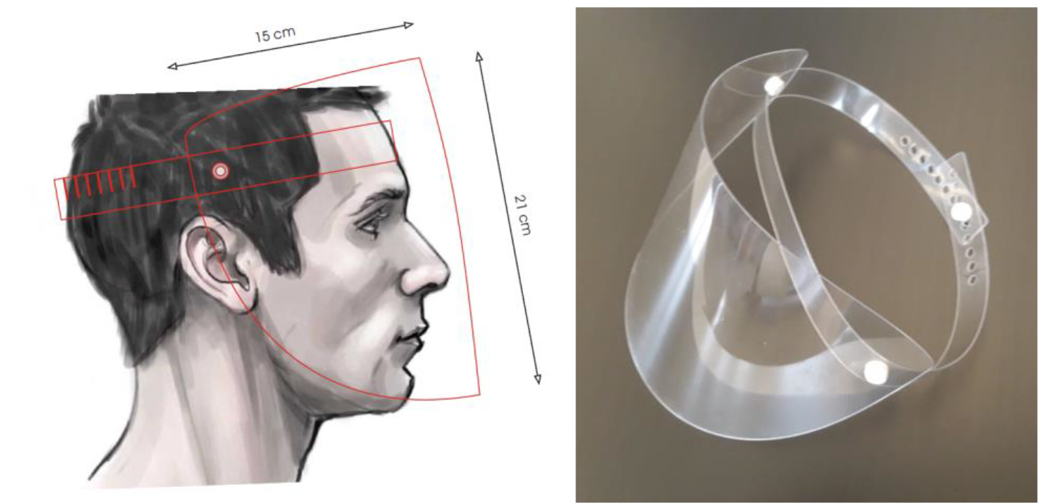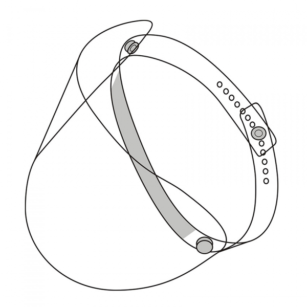 E’ sostenuta da una fascia trasparente regolabile in larghezza (9 misure), resa confortevole da una striscia morbida da 2 mm utile per non lasciare segni sulla fronte.