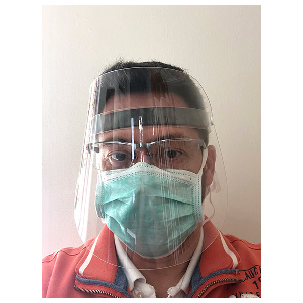 Visiera protettiva trasparente in PET, un materiale di alta qualità che isola efficacemente la saliva ed è impermeabile ed antipolvere. Copre dalla fronte al mento, proteggendo completamente il viso da spruzzi, schizzi, acqua ed aria.