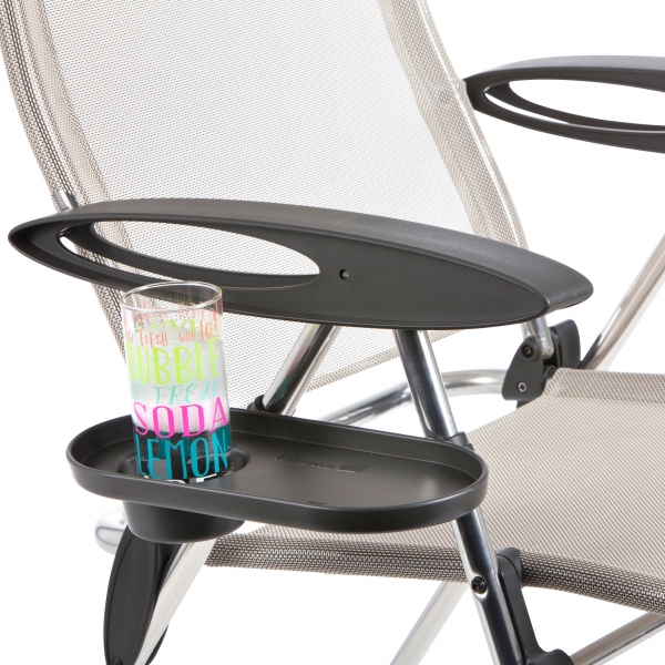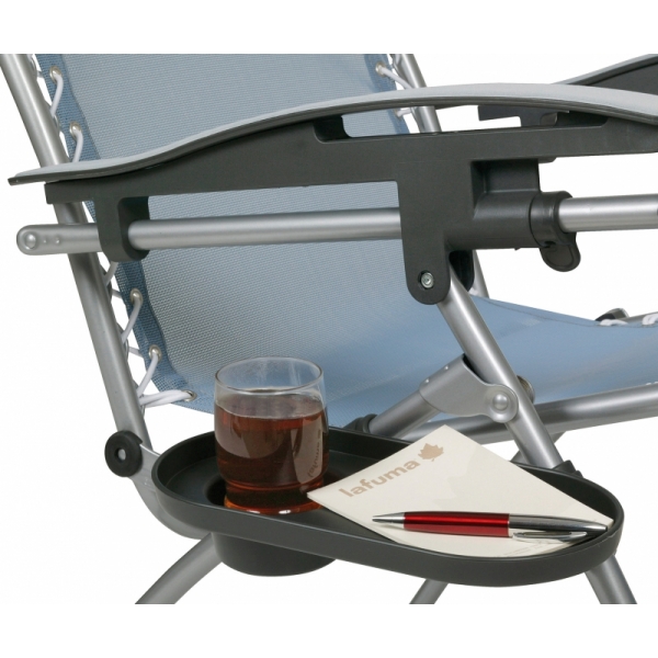 Il ripiano porta bicchiere è un accessorio indispensabile per avere a portata di mano qualcosa con cui dissetarsi.Adatto a tutti i modelli di sdraio relax reclinabili LAFUMA nonché al Alu Low e allo Alu Cham.