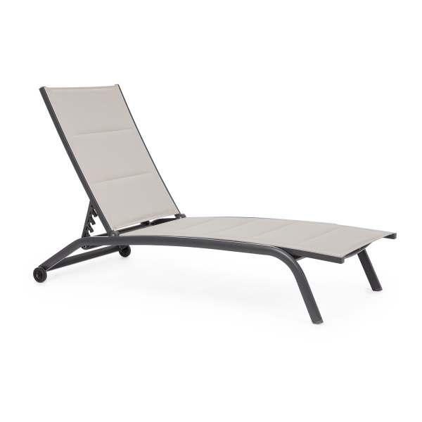 Fantastico lettino prendisole Cleopas, struttura leggera in alluminio con rivestimento in textilene (con imbottitura). Stenditi e goditi il piacere del sole nelle calde giornate estive in assoluta comodità. Grazie alle fantastiche ruote lo spostamento risulta essere estremamente facile e senza sforzi. Lo schienale permette di rilassarti in 5 fantastiche posizioni a tuo piacimento! Godersi le giornate all’aria aperta non è mai stato così semplice!