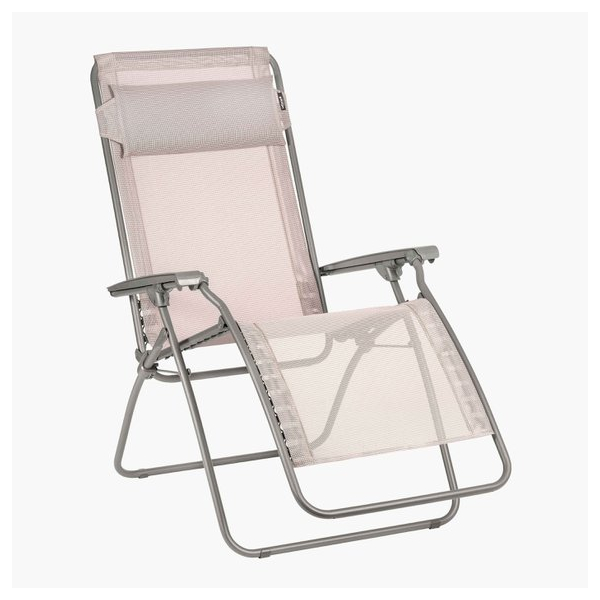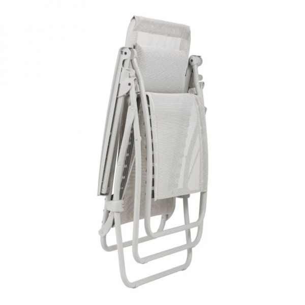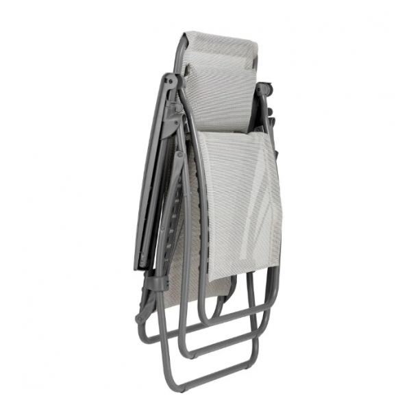 Eccellente poltrona relax leggera, pieghevole, resistente e pratica: offre la posizione Zero Gravity per un relax ottimale che consiste nel sollevare le gambe ad altezza leggermente superiore al cuore per aiutare la circolazione e per un comfort unico.