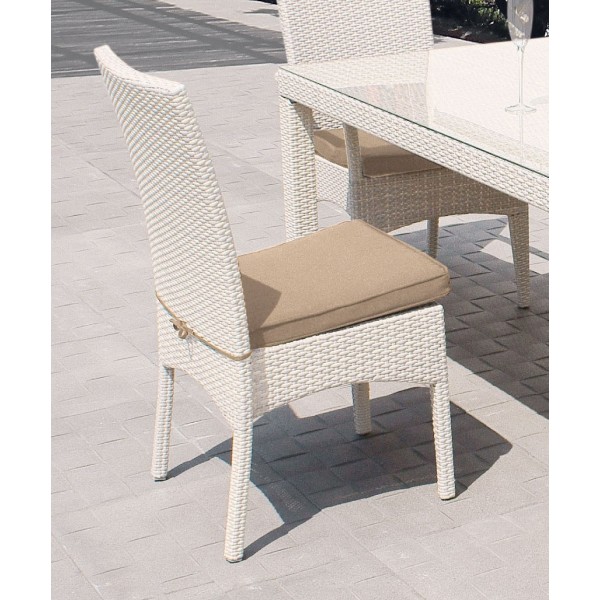 Struttura in alluminio , formata dall' intreccio di polyrattan, resistente all'esterno con un design abbastanza classico. E' una sedia molto comoda e se viene abbinata con un cuscino il comfort aumenta!