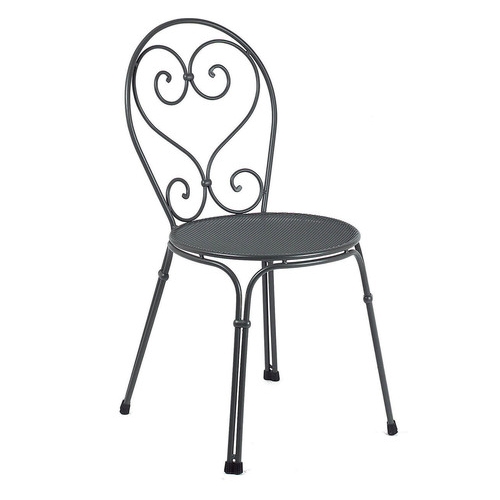 La forma della sedia Pigalle richiama il clima dei bistrot francesi. La silhouette delle sedute è snella, leggera, eterea. Il motivo decorativo disegnato sullo schienale crea un intrigante gioco di volute e riccioli. Uno stile classico reinterpretato quello di Pigalle.