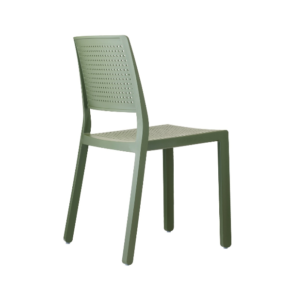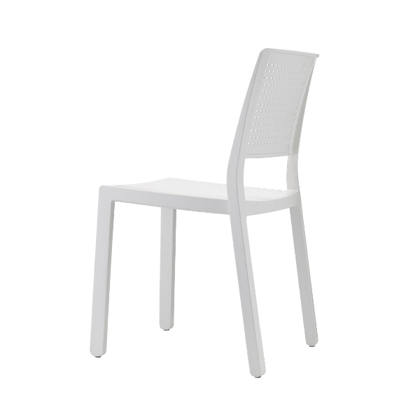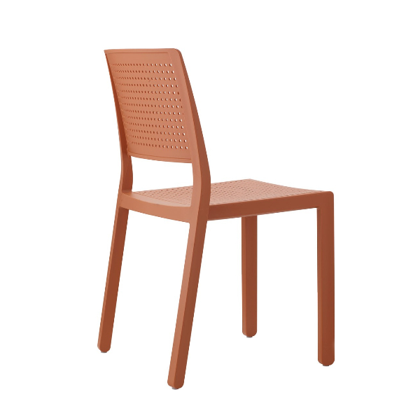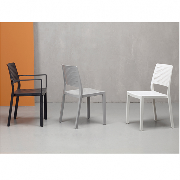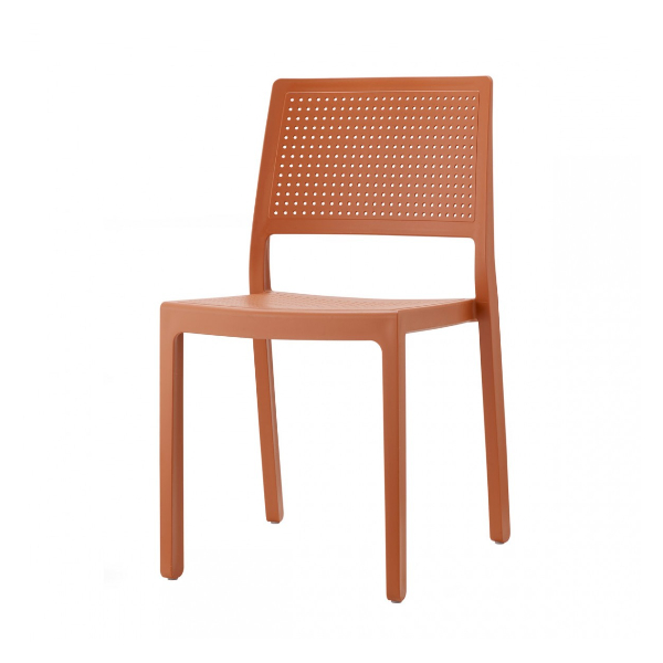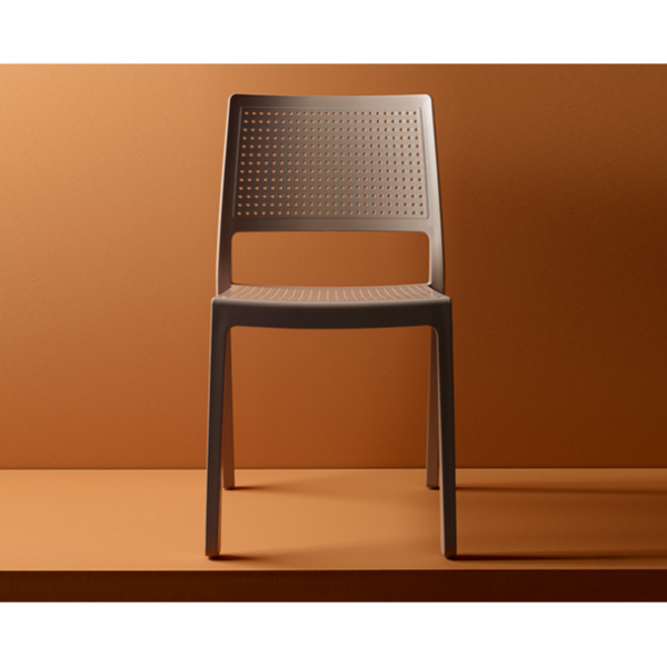Sedia Emi dall’aspetto sobrio caratterizzato da linee essenziali e comodità. Realizzata interamente in tecnopolimero riciclabile, la sedia Emi presenta de fori sullo schienale e sulla seduta che la rende ideale per gli spazi all’esterno (sia domestici sia di contract). La forma particolare della gamba ne conferisce stabilità ed una perfetta seduta impilabile.